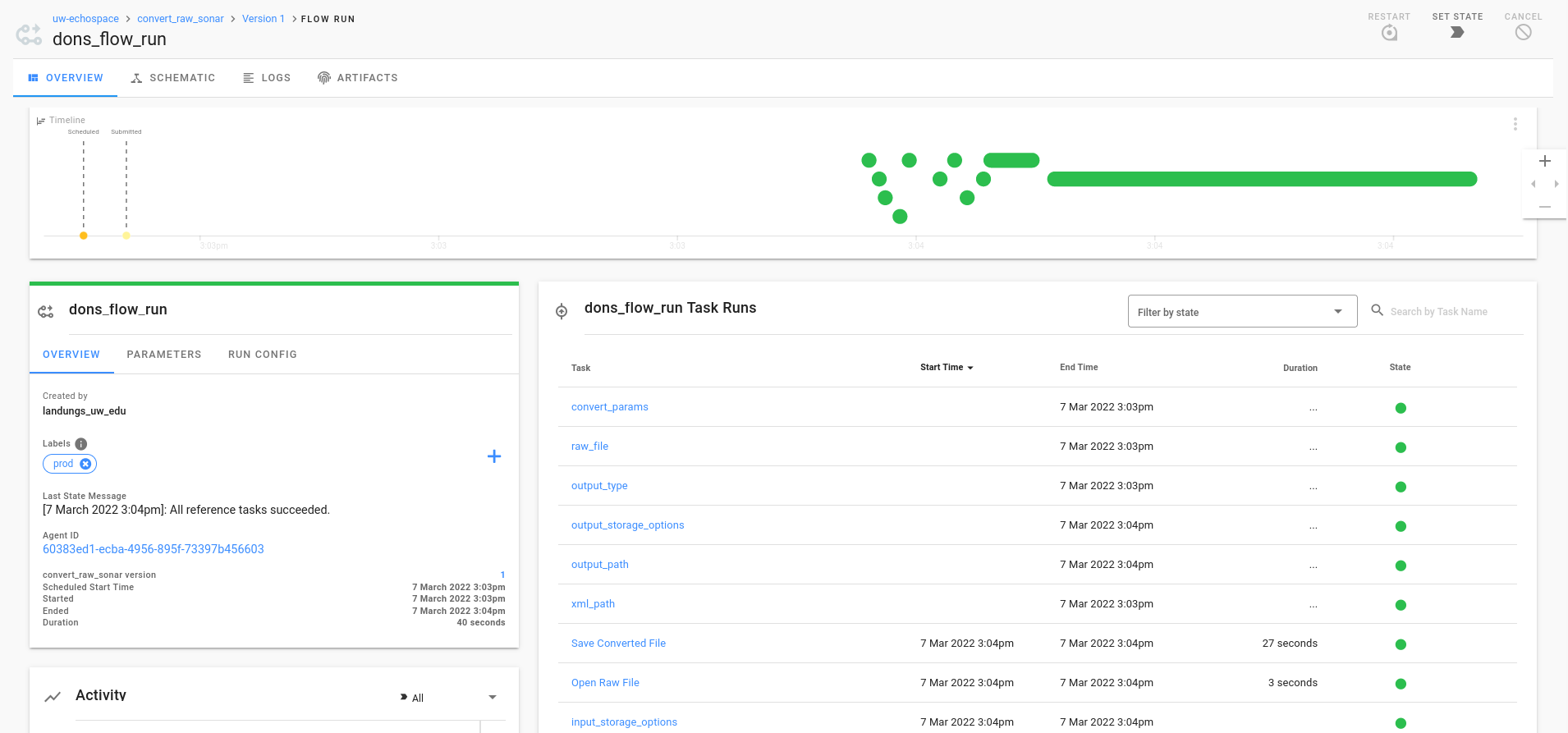 Below are resources on getting started with Prefect and how to use Prefect as part of your data pipeline processing with Echopype.